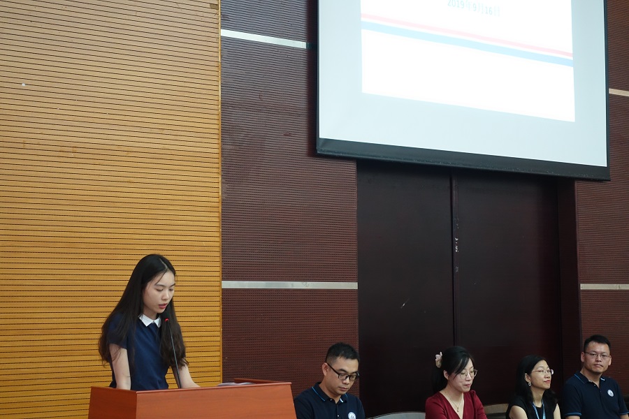2018级员工代表蔡妍希畅谈了自己对老员工活的体会,寄语新生牢记老师的教诲、学好英语和专业技能,度过不留遗憾的老员工活。2019级新生代表蔡莹发言,表达了入学的喜悦,希望在大学奋发图强,增长才华,成为国院的骄傲。