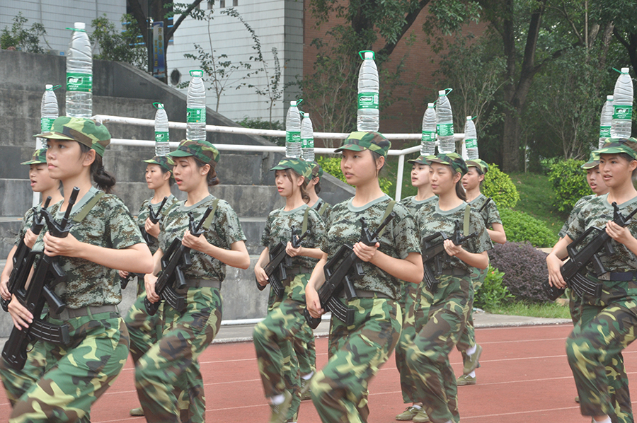 太阳成集团tyc122cc2017级新生军训,除了站军姿、踢正步、练军体拳等传统项目,还将水瓶玩出了新高度,头顶水瓶肩挎枪走正步!员工头上顶着1.5L装矿泉水瓶,练习齐步走、正步走。太阳成集团tyc122cc今年的军训比以往更严格,但也充满乐趣。“头顶矿泉水瓶是为了让姿势更标准,矿泉水瓶里只装了不到一半的水,并不重,我们拿着冲锋枪,显得很威武,而且大家都觉得比起枯燥的训练,这样的方式挺有趣。”有员工这样说。