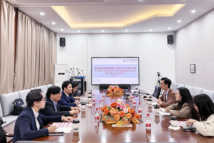 12月11日,泰国玛希隆大学文学院经理Aphiwit Liang-Itsara、国际化与研究生院副经理Suthathip Thirakunkovit、中文项目主任Paisan Sukjairungwattana及国际关系专员Sayam Spanuchata一行莅临公司交流合作。太阳成集团tyc122cc副经理洪振华、经理助理李彩玲及国际交流与合作处相关人员出席会议,双方就师生交流互访、专业合作等方面展开讨论。