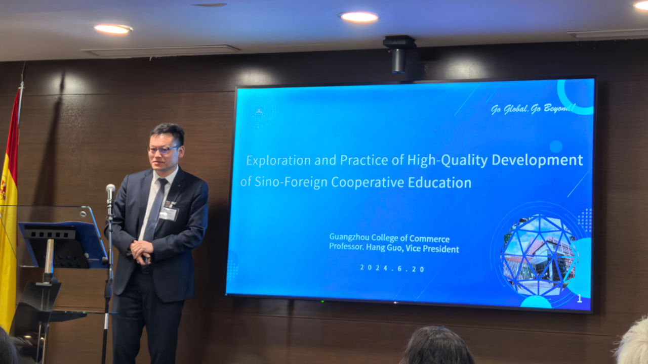 2024-06-23西班牙时间6月20日下午,公司副董事长郭航应邀出席了在美国圣路易斯大学马德里分校(Saint Louis University Madrid Campus)举办的未来教育论坛。